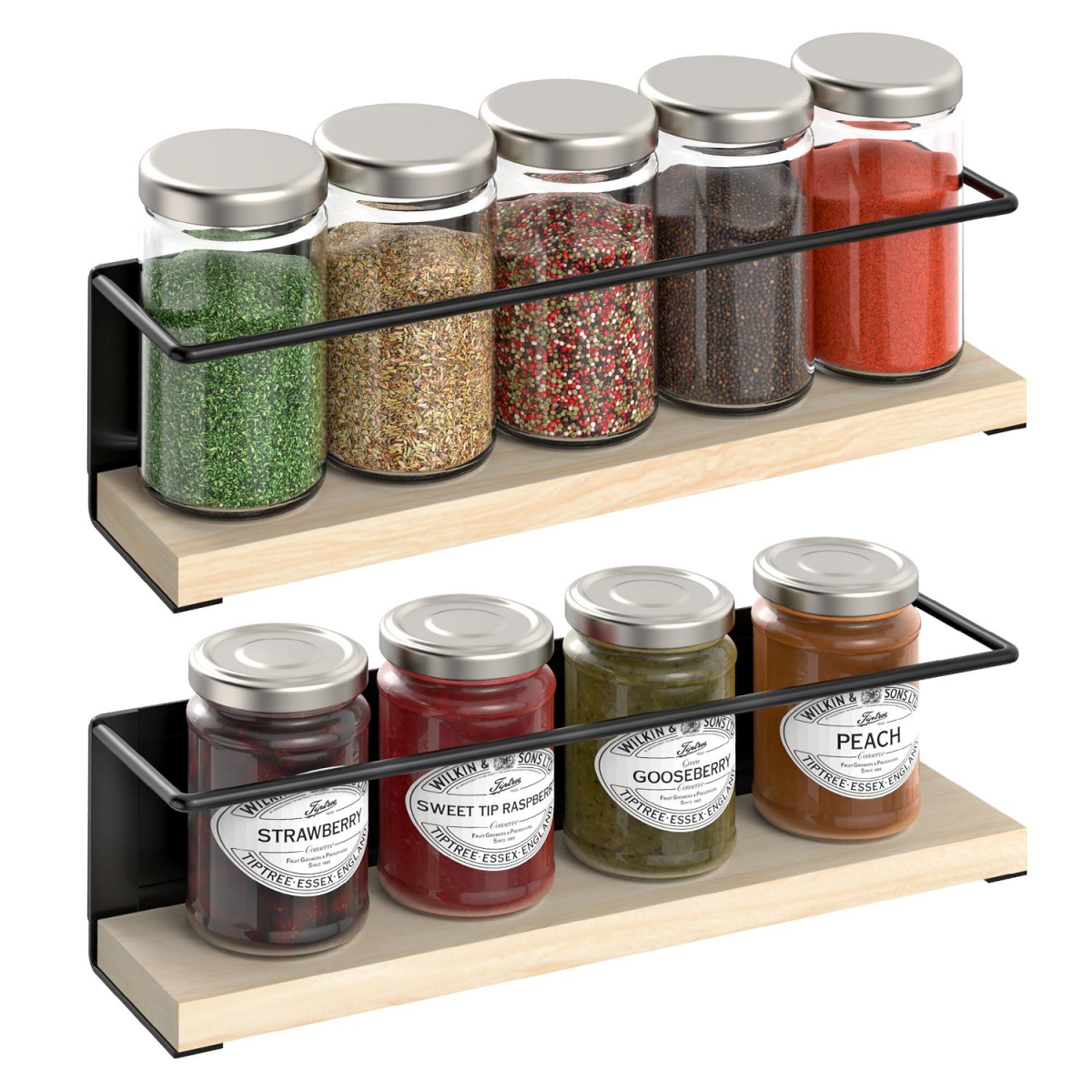 VINSANI 2pc MAGNETIC SPICE RACK WOODEN SHELF 1010420